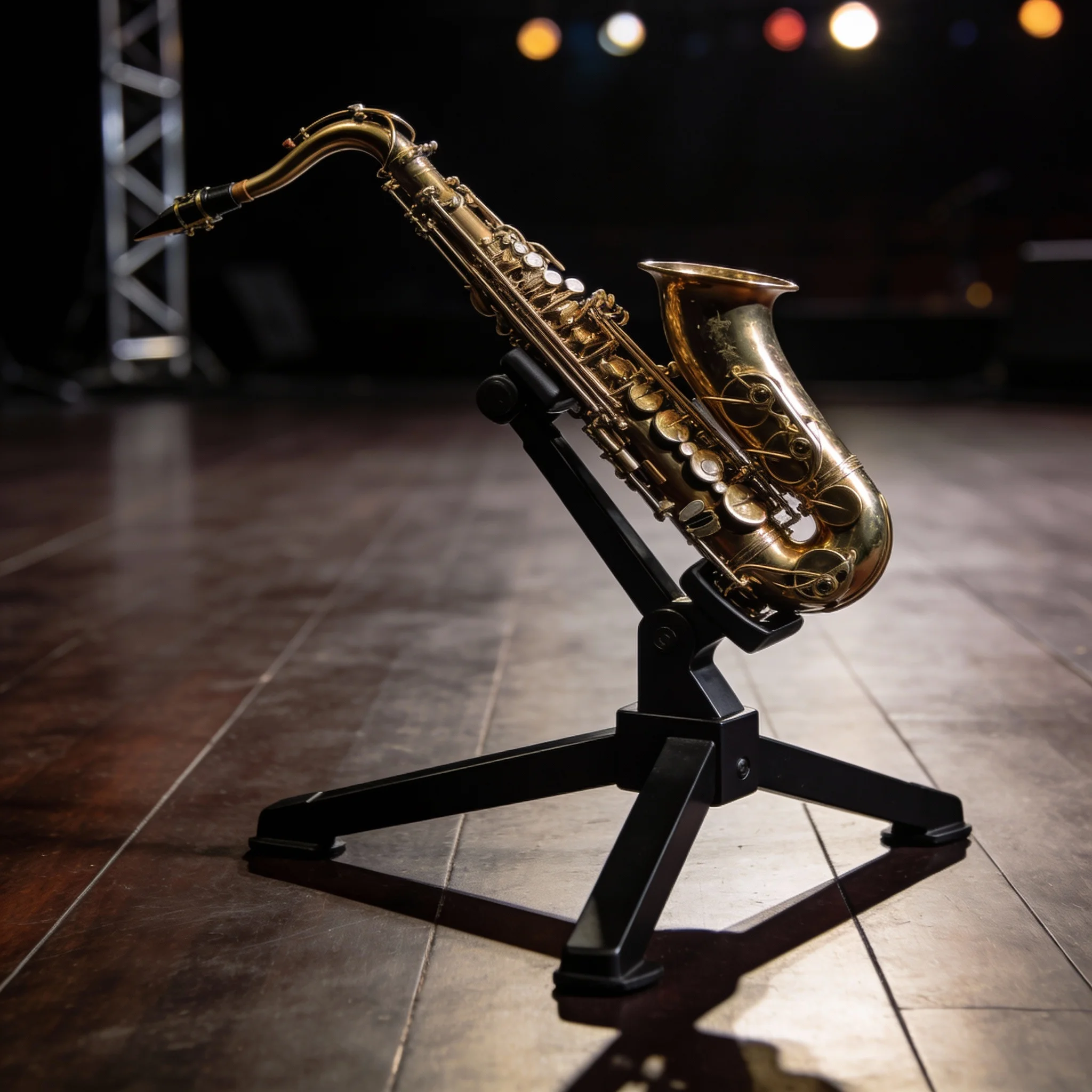 Hercules Stands | DS530B | Noir et JauneSupport pliable Hercules DS530B pour saxophone alto/ténor : stable, léger à 1,1 kg, mousses protectrices et housse incluse pour un transport facile.