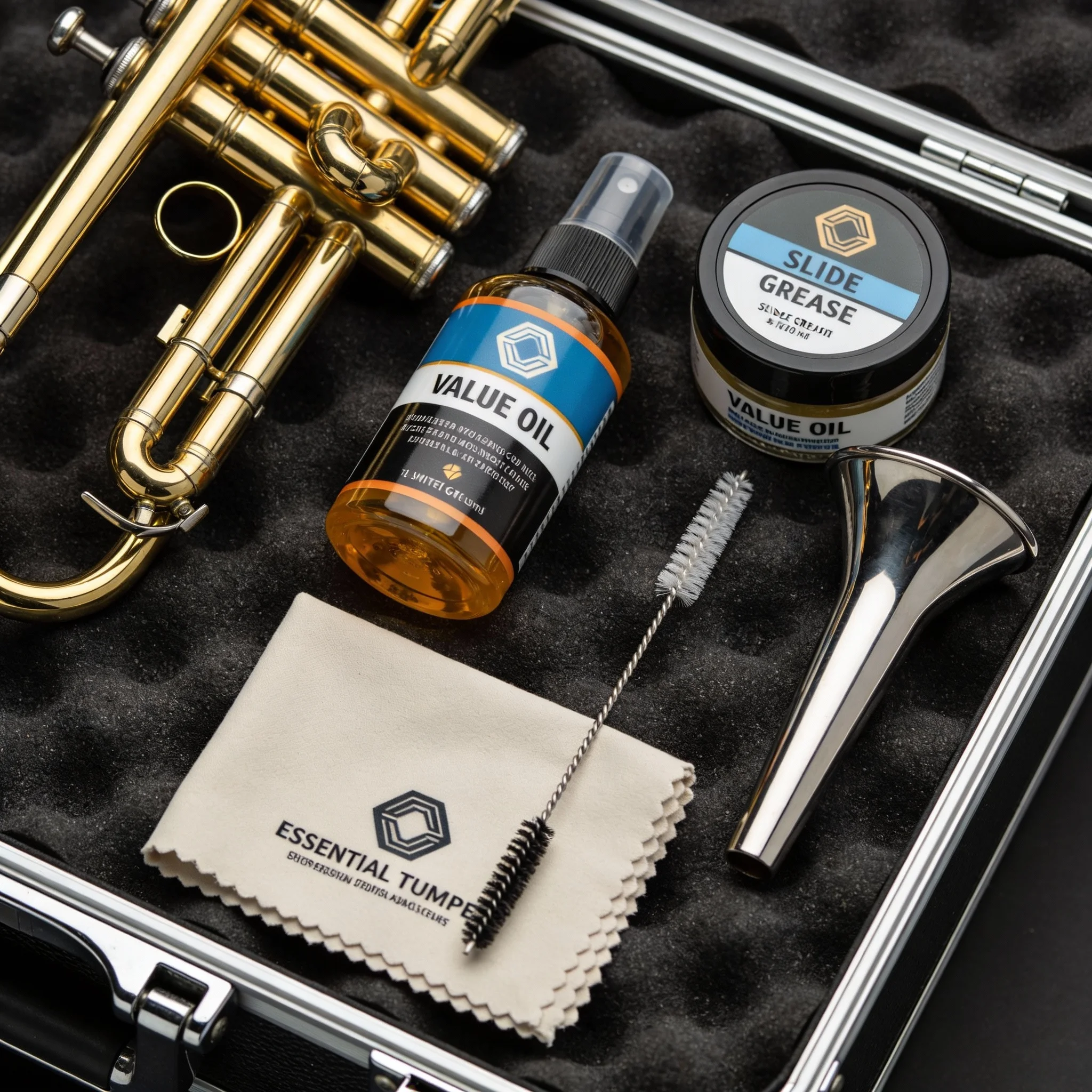 Stagg | SCK-TPKit d'entretien complet pour trompette Stagg SCK-TP : huiles spéciales, brosses et chiffon pour un nettoyage facile et efficace.