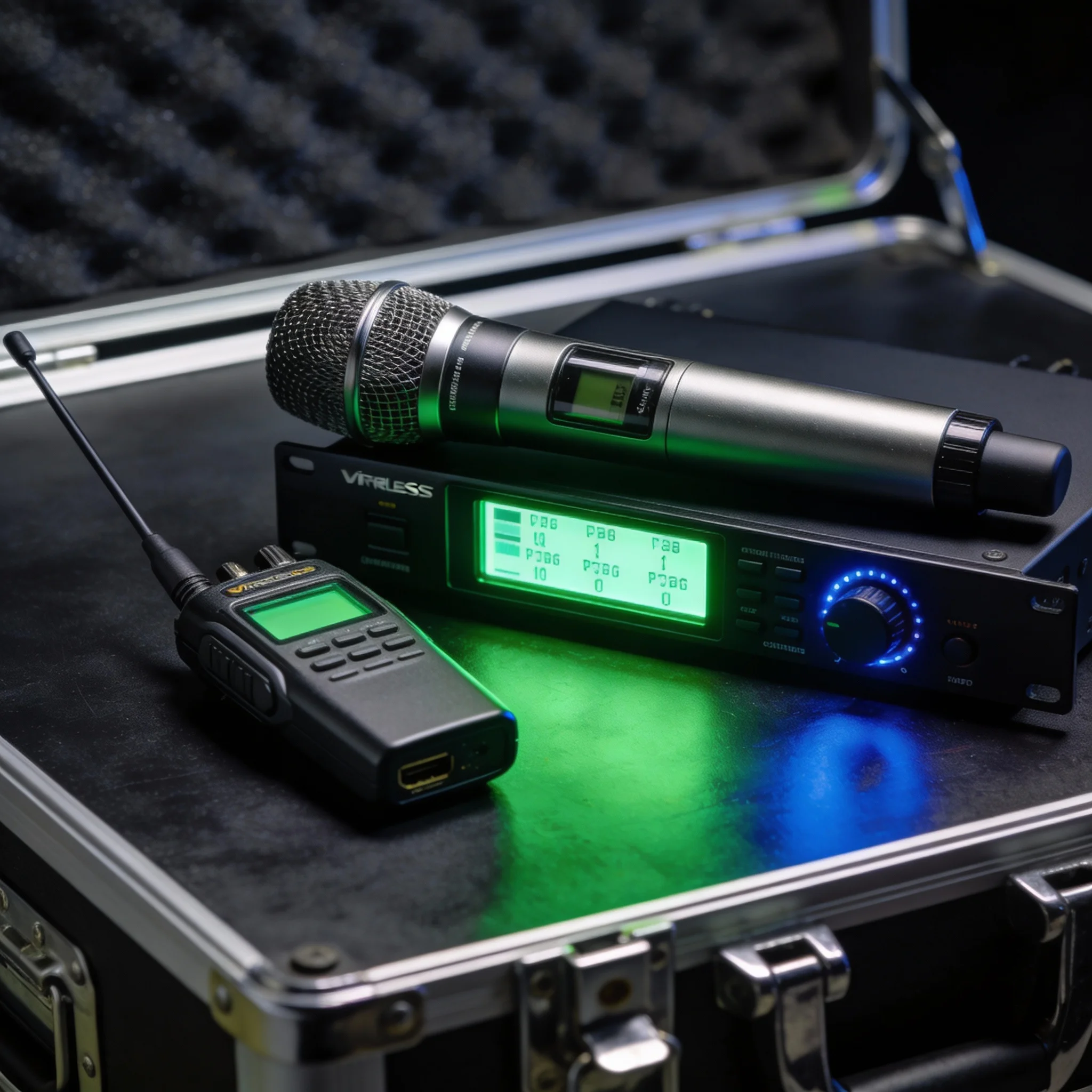 C. Perkins | MIC-PRO-HFMicrophone sans fil UHF rechargeable avec récepteur compact, portée 30-50m et autonomie 4-8h pour une liberté totale sur scène.